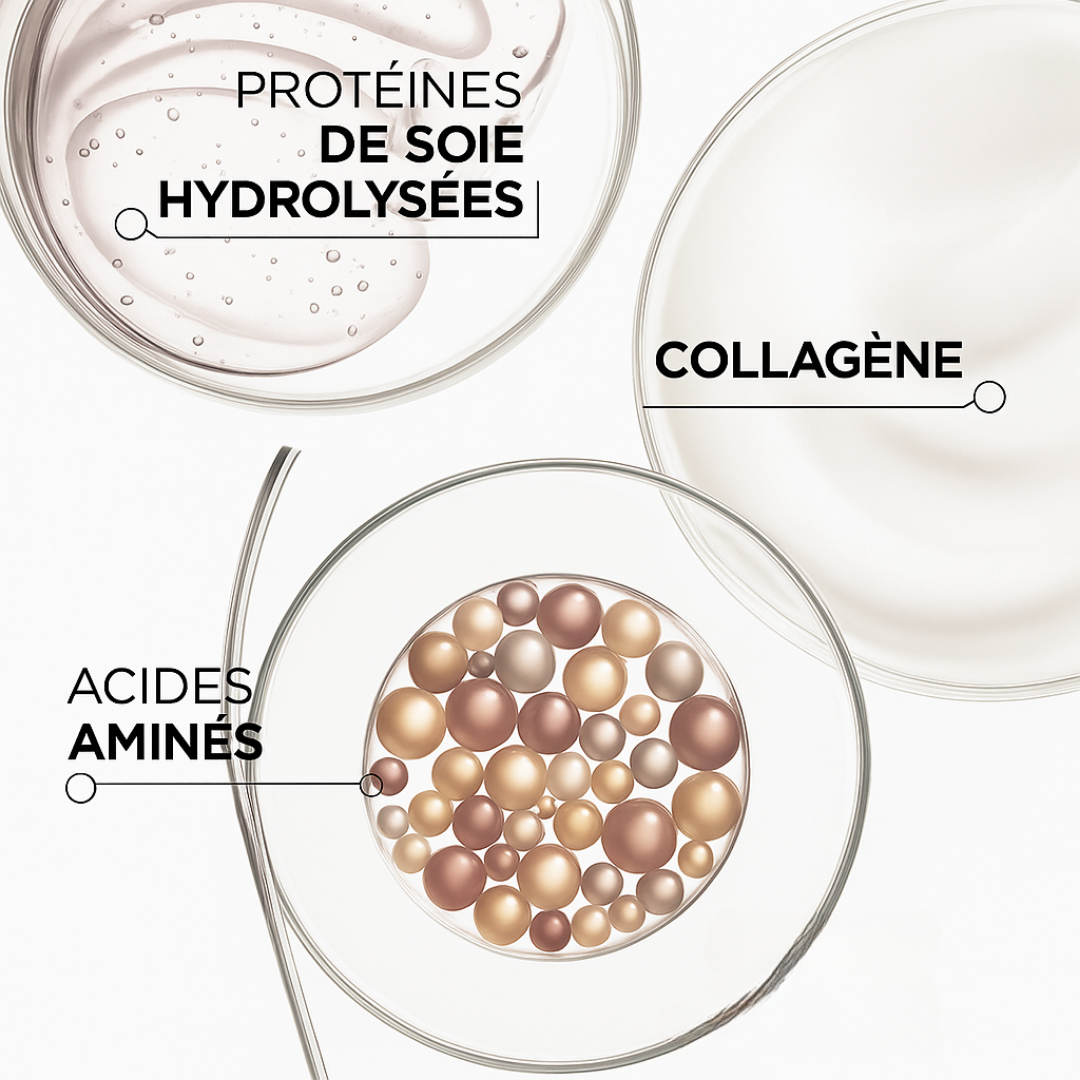 Idéal pour les cheveux abîmés par la chaleur, les traitements chimiques ou les agressions extérieures.