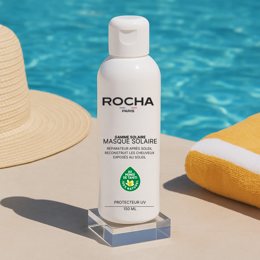 Formulé avec 96 % d’ingrédients d’origine naturelle, le Masque Solaire Rocha Paris offre une réparation profonde et une nutrition durable pour les cheveux exposés aux agressions estivales.