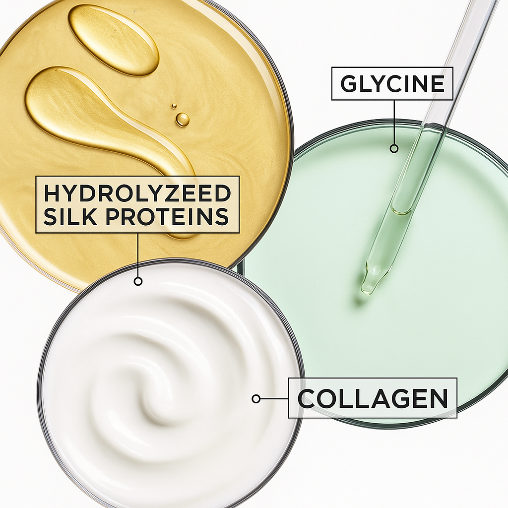 • Brillance miroir et douceur exceptionnelle : Grâce aux protéines de soie, la surface du cheveu est lissée, offrant une brillance naturelle et une finition soyeuse.