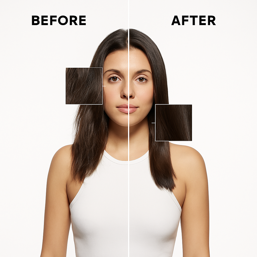 • Protection globale de la fibre : Agit comme un film protecteur contre la chaleur, la pollution et les UV, sans alourdir la chevelure.